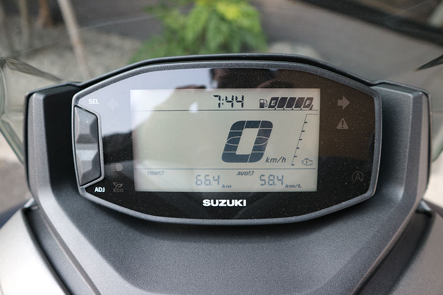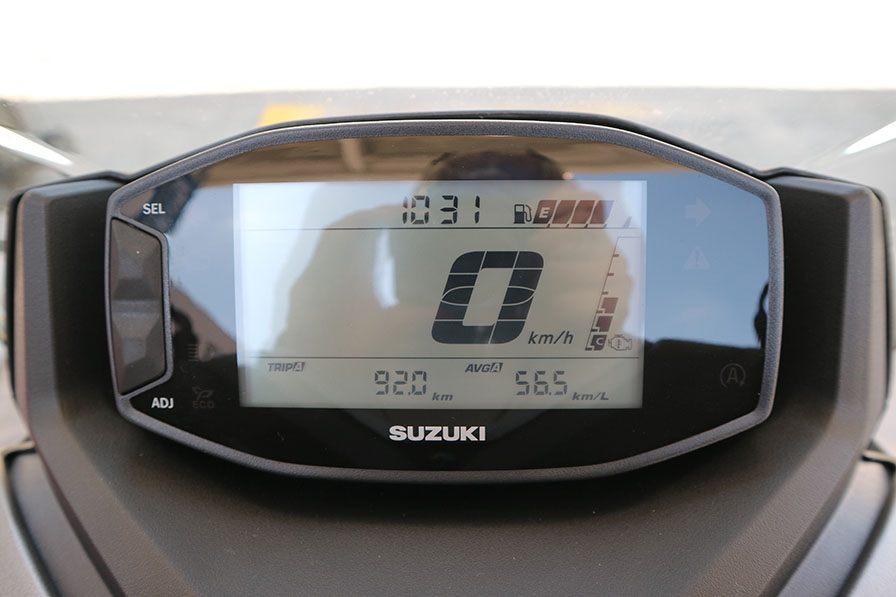 今回、群雄割拠の原付二種カテゴリーにインドから送り込まれたバーグマンストリート125EXに試乗して、同じインド軍団のジクサー150、Vストローム250SX同様、ポテンシャルの高さを見せつけられた。エンジン特性はマイルドで、かっ飛ばしたい方には物足りないかもしれないが、原付二種初心者や「移動の足」としてスクーターを使いたい方にはピッタリだと思う。パワーよりも燃費に重きを置いたセッティングは、実走後の燃費に現れている。スズキのバイク初のアイドリングストップシステムは走行条件次第で燃費に貢献している。質実剛健、真面目で実直。実用性という点では文句が付けようがない。