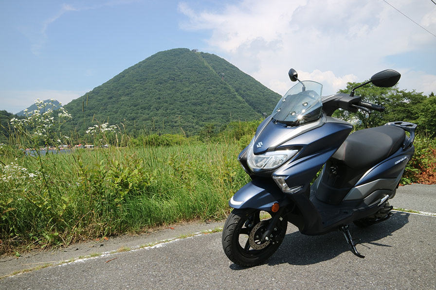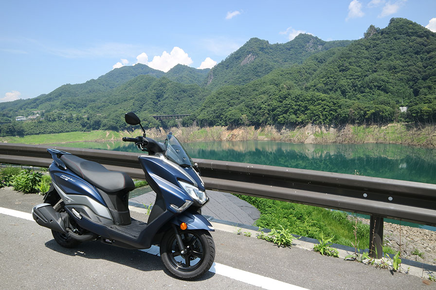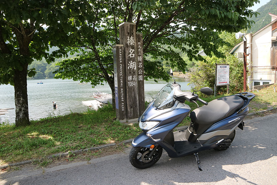 八ッ場ダムを見学して、ここからは榛名湖と榛名山、榛名神社、伊香保温泉を通って宿泊地である前橋市に向かう。国道145号線を中之条方面に走り、郷原の交差点を右折して県道28号線を榛名湖方面に進む。県道28号線と榛名神社に向かう県道33号線は登り坂が続くワインディングルートで、勾配がややきつい登り坂に差し掛かるとややパワー不足を感じた。メーター上の平均燃費も下がり始めて、ストップアンドゴーを繰り返すシチュエーションよりもガソリンを消費している感じを受けた。コーナリングは安定しているもののパワーよりも燃費重視のセッティングがされているためだろうか。実際には平地を走ることが多い原付二種のスクーターの特性を考えれば当然なのだろうが、登り坂が多い街中を走ることが多い方は気にしておいたほうがいいかもしれない。