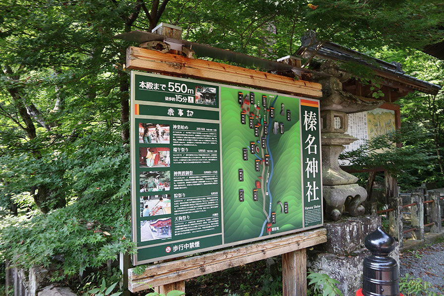 榛名湖に到着すると標高が高いせいか少し涼しい。榛名湖を巡り、榛名山を見つつ県道33号線を走って榛名神社に向かう。榛名神社は入口(随神門)から本殿までの距離が550mあり、バイクを駐車場に置いて登り坂が続く参道を汗だくで歩いてお参りした。榛名神社を参拝した後、県道33号線を榛名湖方面に戻り、県道33号線を進んで日本でも有数の温泉地である伊香保温泉に向かった。
