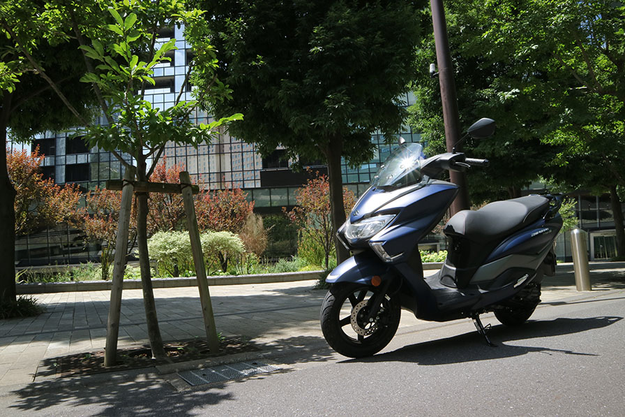 まだまだ街中では見かけることが少ないバーグマンストリート125EX。先見の明があるオーナーは羨望の目で見られる日が来るかもしれない。(完)