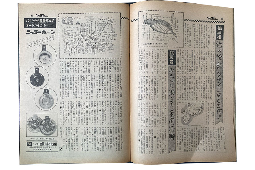 「この小さな1枚のはがきから……男の友情がはじまる」の読者コーナー。男の友情どころかミス・バイクと命名された女性からの投稿が急増してます。平成キッズがこのコーナーをみたら腰を抜かさんばかりに驚くことでしょう。女性投稿急増なんて今じゃ当たり前ですから驚き処ではないのです。投稿者が年齢入の実名までは同じなのですが、住所が番地までしっかりと掲載されているのです。昭和生まれのベテランのみなさまなら「そんなの昭和は当たり前だろ」と思われるでしょう。注目ポイントはそこではないのです。2号目までは住所の途中までだったのになぜに突然? 陰謀論的に推察すると、2号目までの投稿者の住所は実在しない、つまり投稿が少なくて……あ、あ、あくまで根拠のない妄想です。本当の理由は、さあみんなで考えよう。