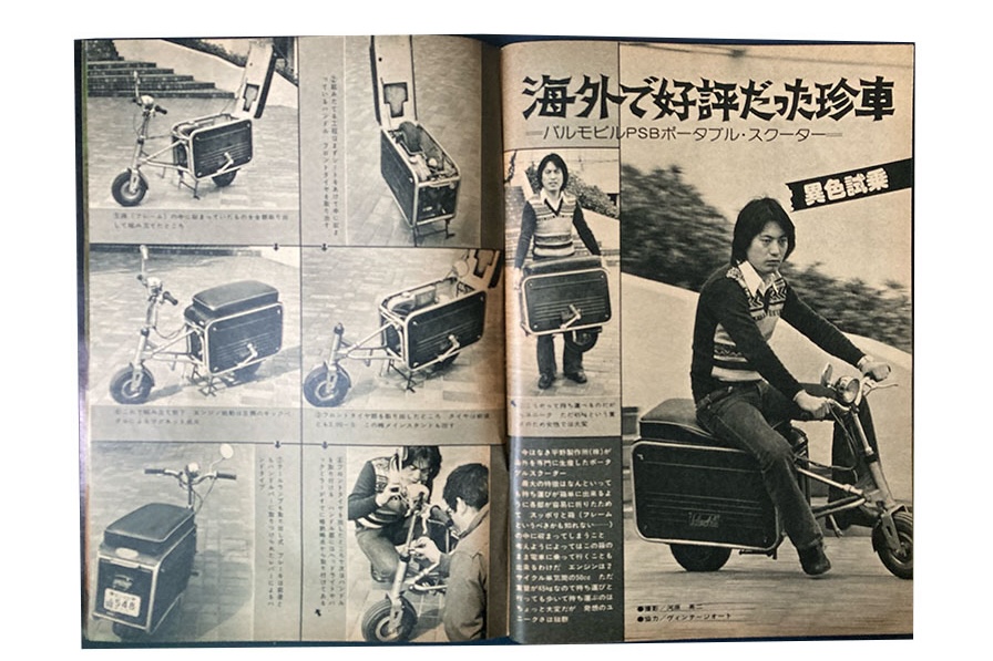 活版ページのチャレンジ教室はパンク修理。近藤さんがチャレンジしています。ちゃんとオチまでつけて。さすがエンターテナー。後半のモノクログラビアはバイオリン製作者の無量塔蔵六さん。愛車はふるーいBMW1929年。そんなBMWあるのか? と思われるでしょうが、いろいろなBMWを合体させた無量塔オリジナルだそうです。お名前の読み方も難しいし、バイオリンも古いBMWも興味がないと読み飛ばしてしまいそうですが、実はこの「むらたぞうろく」さんは凄腕のバイオリン製作者です。ウィキに出ているほどですが、バイクについての記述はなし。ということは、これ貴重な記事だったりするんじゃないでしょうか。貴重といえば平野製作所が作ったトランクになるバルモビルPSBポータブルスクーターの試乗。これもすごいですね、写真残ってないかと探しましたが、残念ながら発見に至りませんでした。試乗しているのは若き日の石井昭博さんです。若い頃はカッコよかった……じゃなくてずーっとカッコ良かったです。