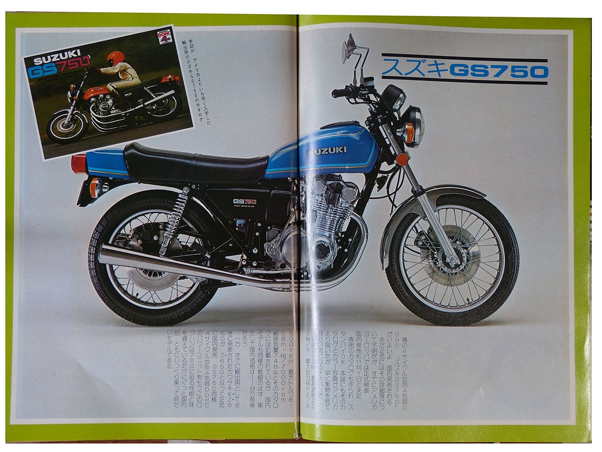 巻頭カラーはZ650とGS750。といっても広報写真1枚ずつのさらっとした内容。Z650は「750に迫る性能と味を備えているだけにぐっと国内的」と独創的な解説があります。先月号の試乗はモノクログラビアなのになんでわざわざカラーで? とも思います。邪推大好きな私の妄想では、GS750のスクープ的な速報を予定していたのに、写真が一枚しか入手できず、やむなくZ650も足してお茶を濁し……たのかどうかは永遠の謎。