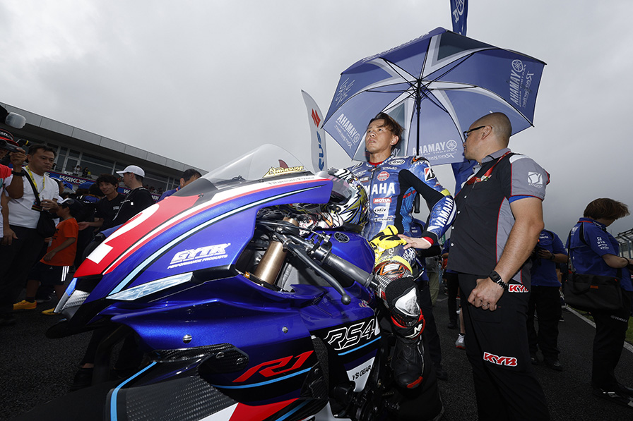 スタート直前に5分間実施したウォームアップ走行では路面が濡れていたが、状況は変化していき全車がスリックタイヤを選択。だが所々にウェットパッチが残る難しい路面だった。サイティングラップで中須賀がコースアウトする場面もあったが、「ここで、路面の状況を確認できたとポジティブに捉えたい。転倒しなくて良かった。レース中なら、コースアウトを取り戻すのは、難しいので、その前に、状況が分かって良かった」とコース復帰してグリッドに着いた。