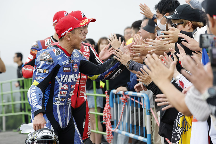 中須賀はハンデがある中でもトップライダーとしての役目を果たし、しっかりとバトンをつないでトップ争いを繰り広げ、優勝したTeam HRCに引けを取らない存在を示し観客を沸かせた。