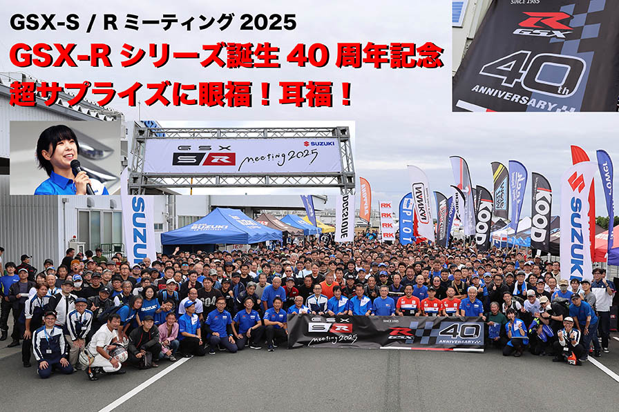 2025年10月12日、静岡県スズキ浜松工場を会場に『GSX-S/R Meeting 2025』が開催された。GSX-Rシリーズ40周年特別イベントとして開催されることが1年前から告知されていたこともあって、1800台越え、2000名越えの新旧GSXファンが全国から集結、GSX-S/Rシリーズをめぐり一層パワーアップしたスペシャルコンテンツを楽しんだ。