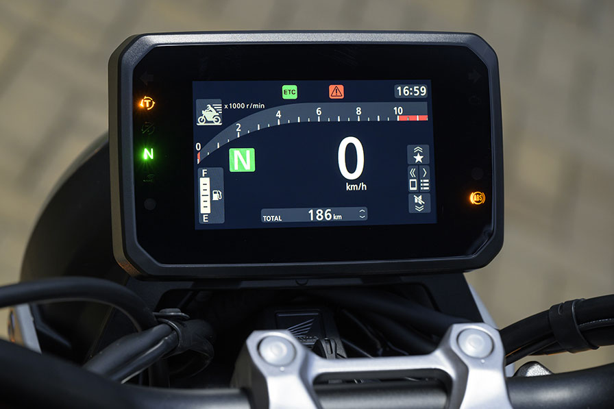 ちなみにこの四角メーターに対しては否定的な意見も多いらしいが、これも時代である。スマホが生活の一部になった今、二眼メーターのロマンよりも実を採ったというのもホンダらしい。なおSEについているカウルもまた空力を徹底追及しているというから、高速道路走行が多い人、四角メーターのルックスがフィットしない人はカウル装着を検討したい。