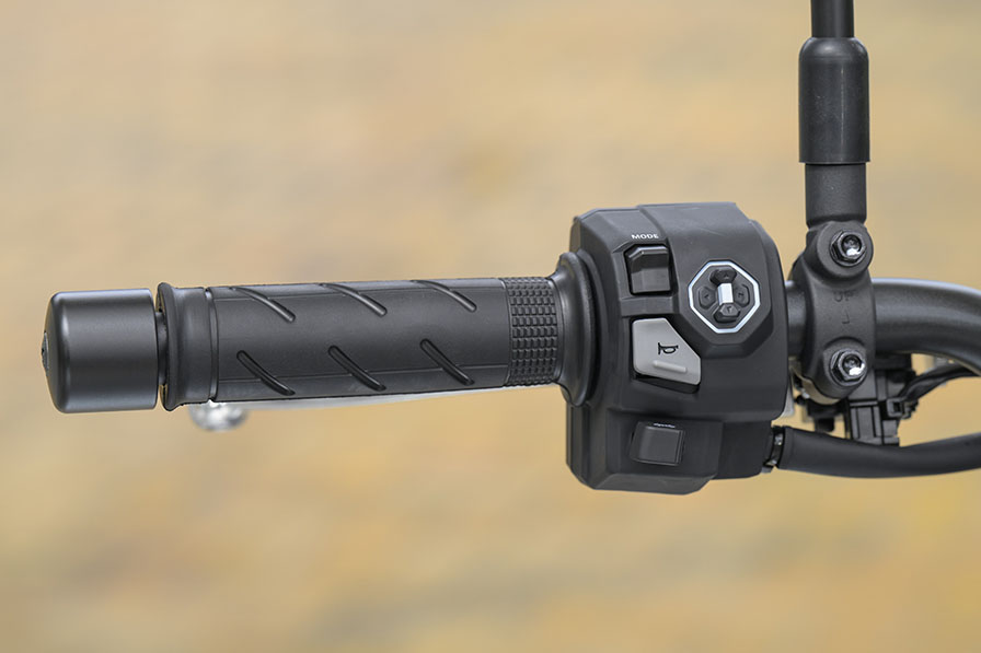 スイッチボックスは操作性良好。左側にある十字キーでメーター内の操作をするのだが、メーター表示のわかりやすさ(全て日本語表記)に加えスイッチの押した感触も良く好印象。モードスイッチは押すたびにスポーツ/スタンダード/レイン/ユーザーの1&2と切り替わっていく。この時のメーター内の表示も文字に加えアイコンもあるため一目でわかるのが良かった。ただホーンとウインカーのスイッチ位置が他社と逆となっているのはやはり慣れず、試乗を通じて何度かホーンを鳴らしてしまいびっくりした。ホンダ社内でもこの配置については(やっと!)疑問の声が上がっているそうなので、ユーザーさんも筆者と同意見ならばぜひ声を上げ続けてほしい!