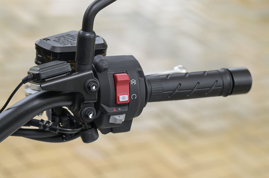 否定的な意見も多いという四角いメーターだが、各モードの操作や充実の表示内容を考えると理にかなってはいるだろう。特に今はスマホが必須となっているため、せっかくの二眼メーターでもその手前にスマホホルダーをつけるようでは本末転倒。ならばナビも表示できるこのメーターがこの先のスタンダードとなるはずだし、こういったコネクティビリティをしっかり確保することで海外マーケットにもアピールできる、というのがホンダの弁だ。それをわかったうえで、外ズラだけでも二眼メーターとし、その中身はフルカラーTFTとするという手もあった気もするが…… 四角メーターがしっくりこない人はSEでは標準装備されるカウルをつけるというのも選択肢だ。なおメインキーはスマートキーを採用する。