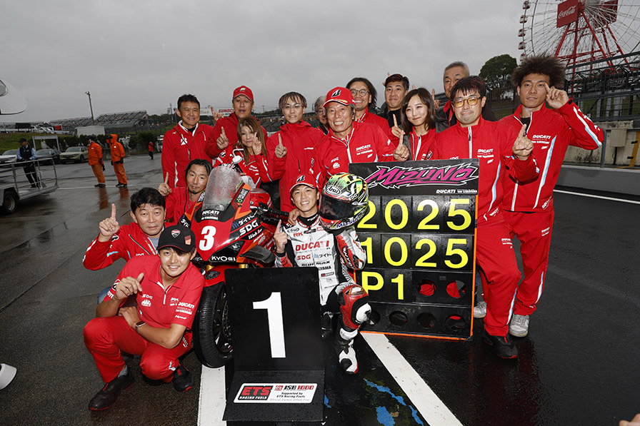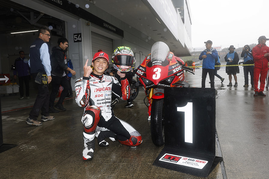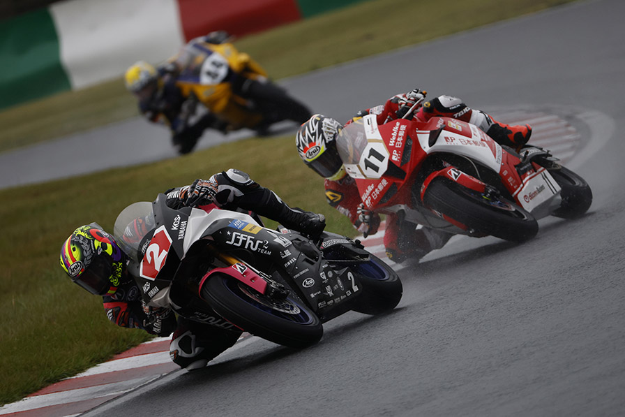レース中盤にはさらに雨が強くなる厳しい状況の中、#3水野 涼(DUCATI Team KAGAYAMA)がレースをリード。浦本が追うが、その差を広げてチェッカーを受けた。2位に浦本、スポット参戦の#14日浦大治朗(Honda Dream RT SAKURAI HONDA)が追い上げバトルを制して3位に入った。