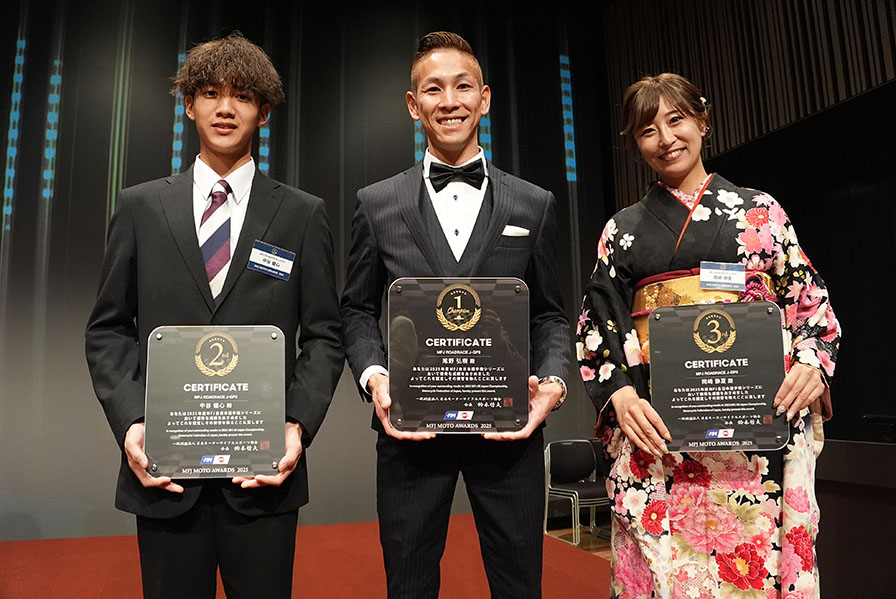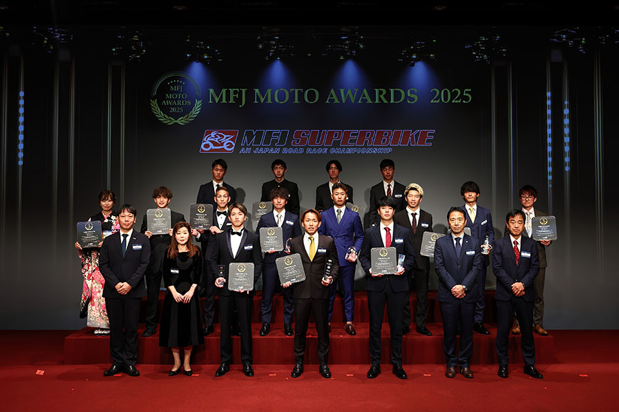 『2025 MFJ MOTOAWARDS 授賞式』が東京都内のホールで開催された。全日本ロードレース、全日本モトクロス、全日本トライアル、全日本スノーモビル、全日本スーパーモト、全日本エンデューロの各選手権シリーズにおいて、各カテゴリーの上位3名が表彰された。