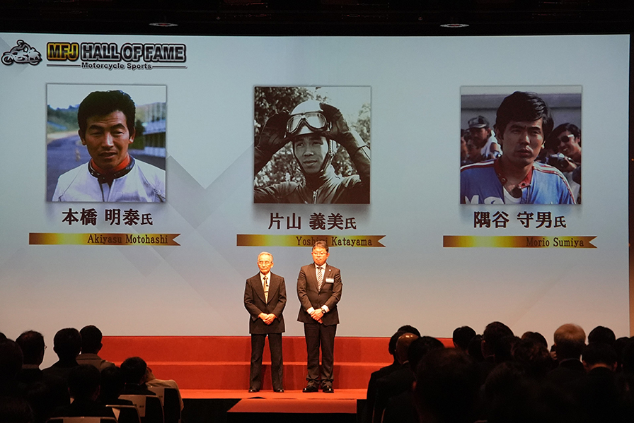 モーターサイクルスポーツ殿堂顕彰者には、本橋明泰氏、片山義美氏、隅谷守男氏が選出された。本橋氏は浅間火山レースなどで活躍し、後進の育成や技術伝承に尽力。片山氏はマン島TTをはじめ海外で活躍し、日本人ライダーが国際舞台へ挑戦する道を切り開いた先駆者だ。隅谷氏は日本のレース界の基礎を築いた。3人はロードレース黎明期から発展期を支えた重要人物である。