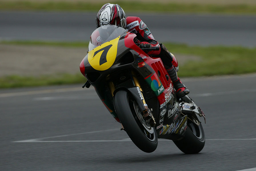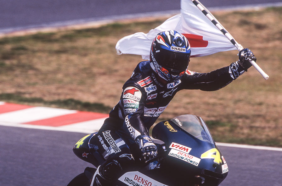 そして2001年(平成12)春に開催されたWGP鈴鹿大会。125㏄クラスに参戦した東 正雄は最終ラップで、3番手から一気にバックストレートでトップに並んだ。スリップストリームを使い、トップに躍り出るとトップでチェッカーを受けた。