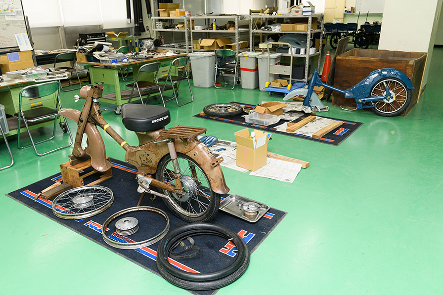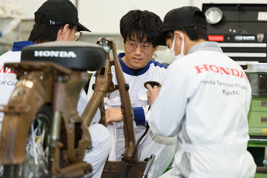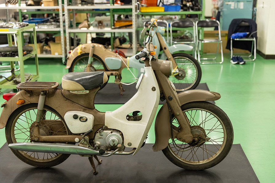 そのために、関東校と関西校それぞれで不動車のスーパーカブをレストアし、長距離走行ができる状態に仕上げることに取り組んでいるのです。
