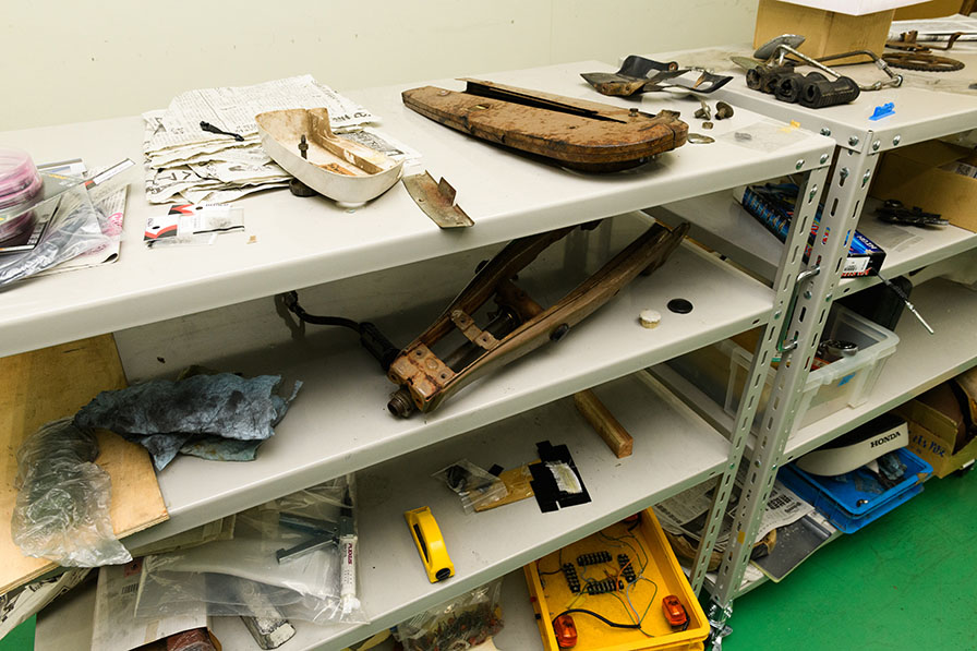 部品棚には、さまざまなパーツが仕訳けられています。