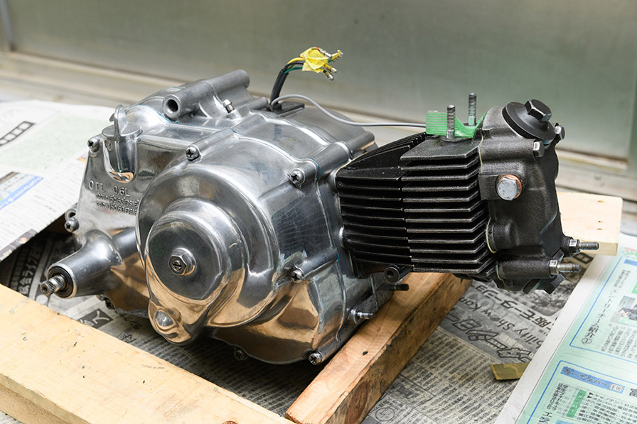 Vintage用のエンジンは、大切にされている感じを出すためにピカピカの状態に。磨き工程はすべて手作業で根気が必要。自宅で行うこともあったようです。