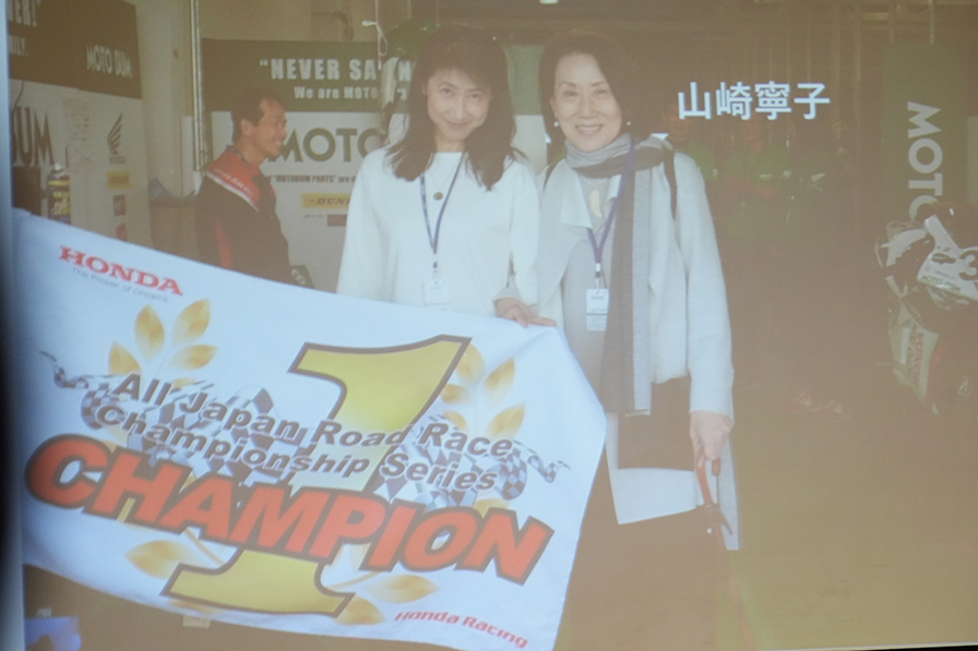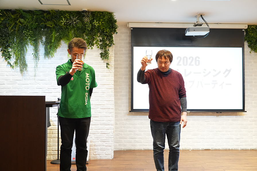 須貝義行は「SUGO選手権でチャンピオンを獲得した際、山崎さんに報告したところ『地方選手権じゃまだまだ。全日本で活躍しなきゃ』と声をかけてもらいました。全日本で勝った時には祝勝会を開いて祝ってくれました。モトバムには歴史があり、たくさんのライダーが巣立ったチームです。これからも、その伝統を受け継ぐ気持ちを大事にしたい」と挨拶した。
