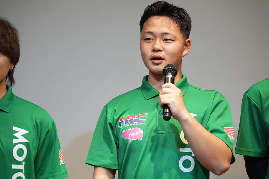 昨年までチームに所属していた青田 魁は、今季からチームを移籍しST600クラスを戦う。また、松川泰宏はモトバムからの卒業を決め、壇上に上がった。