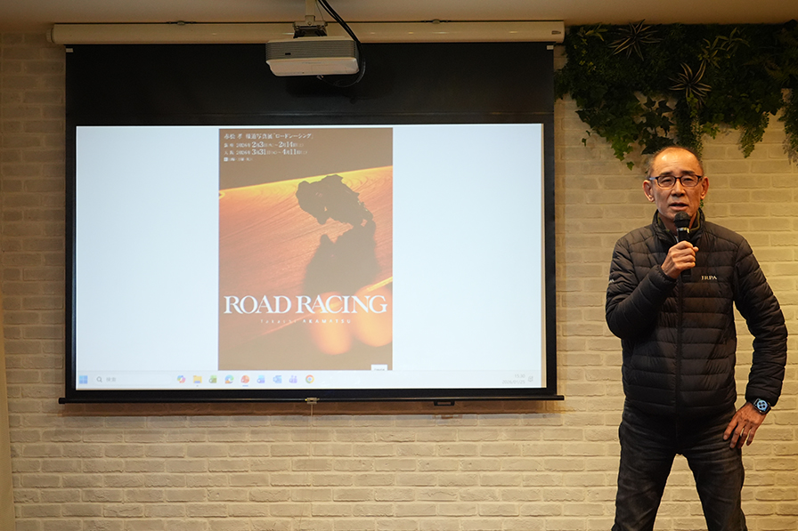 「2月3日から14日までキャノンギャラリーで、写真展が開催されます。モトバムライダーだった荒川晃大選手や、鈴木光来選手の写真なども展示されていますので、是非、足を運んで下さい」と語った。