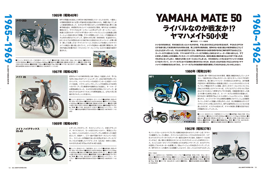 図鑑形式でスーパーカブ50の歴史を俯瞰するスーパーカブ50全史、写真はほぼ再掲載ですが、内容は今までの蓄積をブラッシュアップしました。また新たな企画として、まとまった記録を目にする機会が少ないヤマハメイト小史も収録しました。他にも70〜90年代の街を走るスーパーカブ、青山のホンダ本社ビルでの最終開催となったカブカフェレポート、愛媛県の高校生が作ったダンボールのスーパーカブC100(再録)など読み物も掲載しております。スーパーカブファンはもちろん、スーパーカブシリーズに興味を持っていただく最初の一歩になれば幸いです。