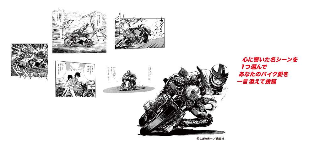 また、新CMのみならず、新宿駅でのOOH(屋外広告)展開およびSNSキャンペーンも開始。心に響いたバリバリ伝説名シーンを一つ選んで、バイク愛を一言添えてXに投稿、入選者にはバリバリ伝説コラボの記念品他プレゼント。
