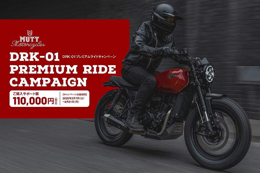 また、MUTT Motorcyclesの新車を成約の上、同期間中に車両新規登録が完了すると、アクセサリーやアパレルなどの購入費用として77,000円(税込)分をサポート。