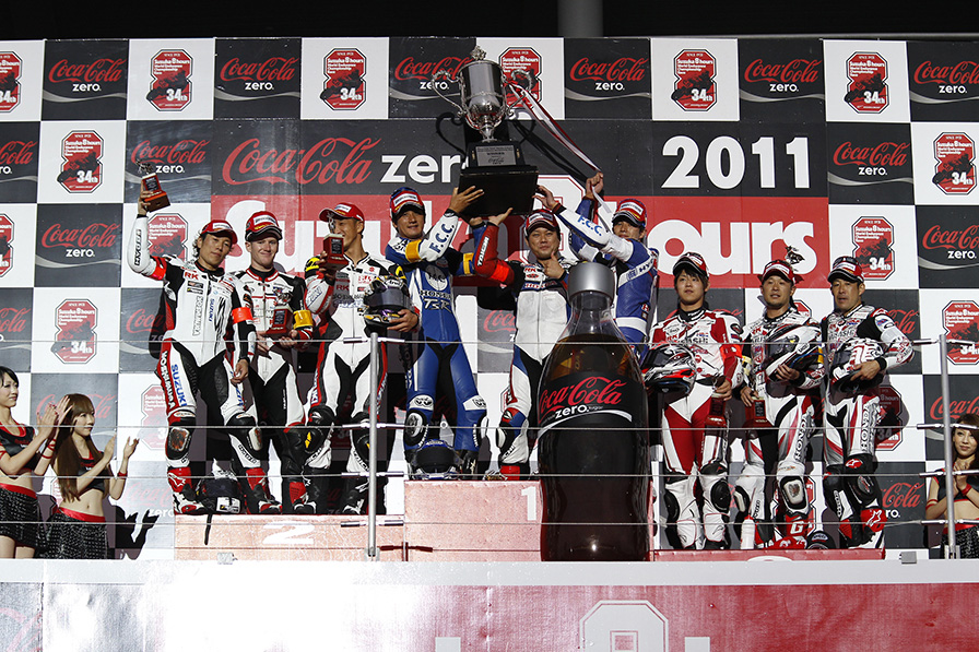 トラブルのピットインが2度あり、後退。それでもそのハンデを克服する清成は主導権を握り猛攻を見せ、4勝目の8耐勝利を飾った。