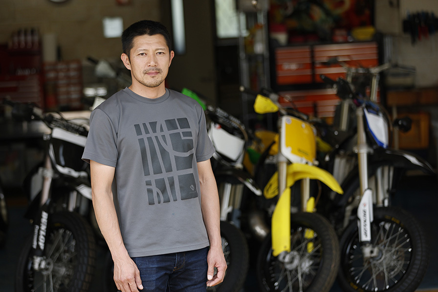 自宅にはトレーニング用に揃えたオフロードバイクが並ぶ。「かなりの台数を処分した」と少し寂しそうに笑った。