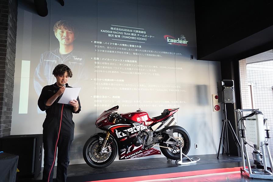 横浜のバイク用品メーカー・Kaedear(カエディア)は、日本発のバイク用品ブランド。主にライダー向けのスマホホルダー/USB電源/ワイヤレス充電マウント/インカム周辺アクセサリーなど、ツーリングや通勤で“実用性が高い”ガジェットを幅広く展開している。運営する株式会社Kaedear(本社:神奈川県横浜市、代表取締役:飯沢智博)は、自社レーシングチーム『Kaedear Racing Team横浜』の2026年度参戦体制発表会をKaedear新店舗にて行った。