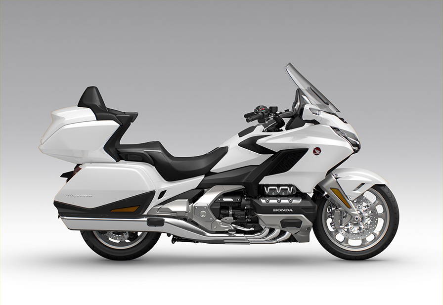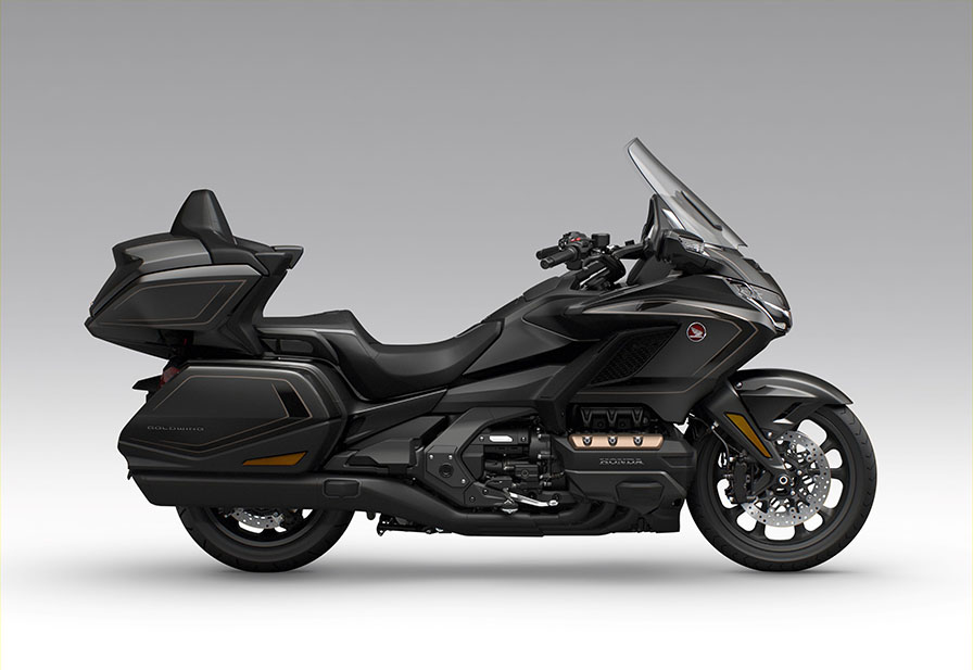 「Gold Wing」は、1975年に米国で発売された初代モデルから、50年にわたりHondaのフラッグシップモデルとして進化してきました。2018年に、フルモデルチェンジを行い、軽量コンパクトに設計されたエンジンを剛性の高い車体に搭載するとともに、Honda独自の二輪車用ダブルウィッシュボーンフロントサスペンションや、利便性の高い数々の装備を設定し、パッセンジャーとともに上質な走りを共有できる大型プレミアムツアラーとして、お客様から支持をいただいております。