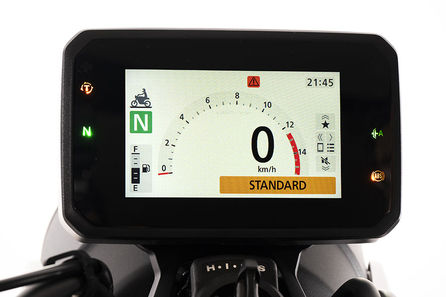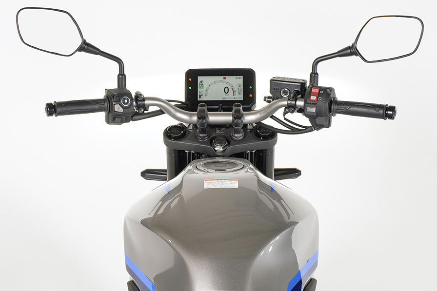 さらに撮影が許された車両を見ると、ハンドルスイッチは、さきに発売されたCB1000Fと同じ仕様ですから、おそらくライディングモードやスマホ連動機能も搭載されていると思われます。