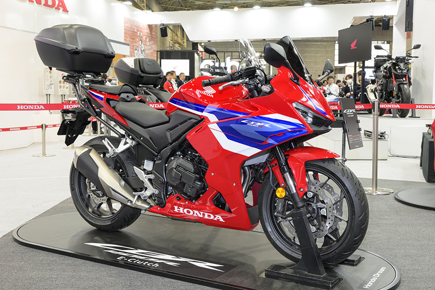 さらにフルカウルモデルの兄弟車・CBR400R Eクラッチコンセプトも同時公開されていて、こちらは先代にあったスーパーボルドールのハーフカウルでなく、フルカウルを採用。それでも、決してスーパースポーツとしてのパッケージではない、フルカウルスポーツといったたたずまいです。